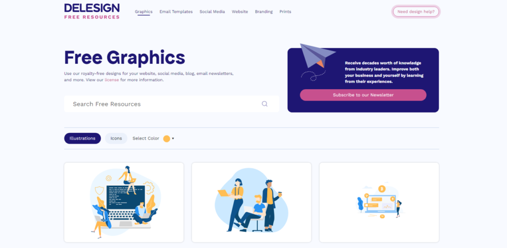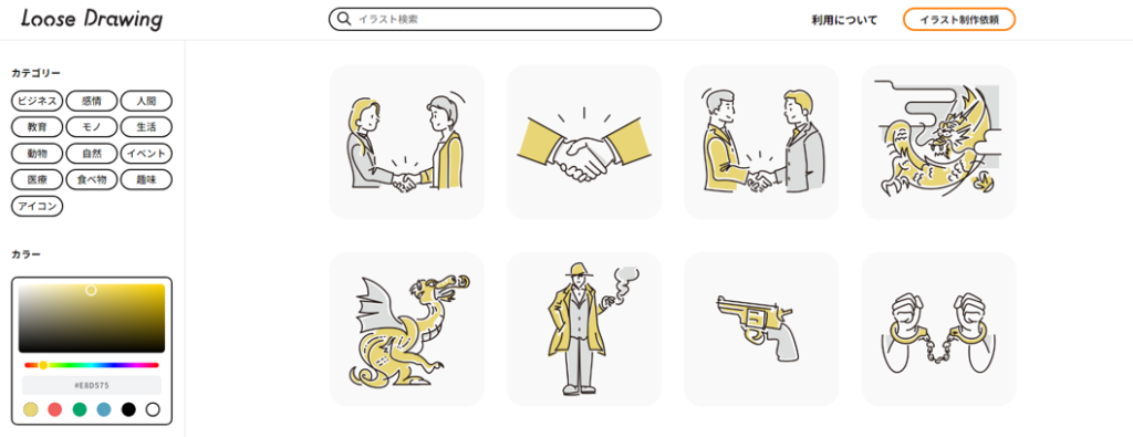背景に馴染むようなイラスト素材が沢山あるのが特徴です。サイト上でカラーの変更をすることも可能です。